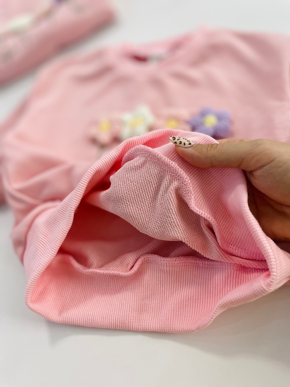 گلهای روی لباس گلدوزی شده و بسیار نرمه