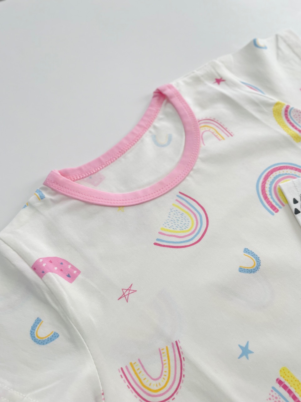 صورتی رنگین کمان-سایز۶۵🌱 (قدبلوز۴۰/ پهنا۳۰/ قدشلوارک۲۸/ قدفاق۲۱)
